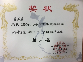 1516班 | 陈珂 | 女子青年组手16-17岁组别-48 kg | 第三名 |