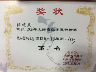 1611班 | 陈晓岚 | 男子青年组手16-17岁组别-68kg | 第三名 |