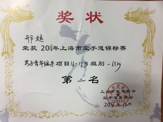 1507班 | 邢越 | 男子青年组手16-17岁组别-68kg | 第二名 |