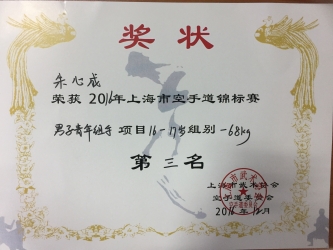 1511班 | 朱心成 | 男子青年组手16-17岁组别-68kg | 第三名 |