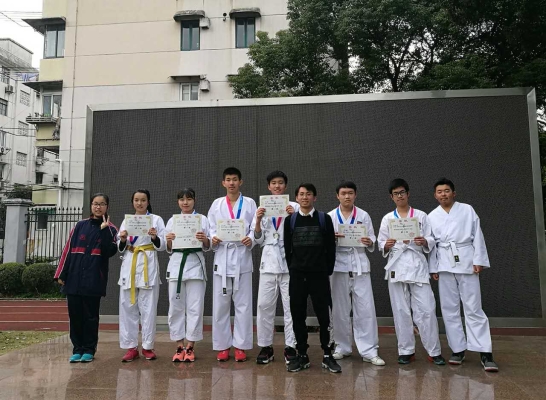 2016年12月11日下午,由上海市武术协会空手道委员会主办、中国空手道协会指导的2016年上海市空手道锦标赛在杨浦区开鲁小学举行,我校商外二部空手道社团派出八名同学参赛,与来自上海各个空手道联盟及学校的选手展开了激烈的对抗。在比赛中,同学们稳扎稳打,面对实力强劲的对手也毫不畏惧与胆怯,表现出了自己的最好水平,取得了不俗的成绩。