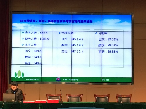 会议包括五个环节:首先,王克新老师通报了2015级学业水平考试合格考结果并分析了2016级学业水平考试课程期末成绩。王老师对我校2015级学业水平考试的结果给予了充分的肯定,从横向与纵向两个维度解读2016级各班期末考情况,对进步和退步比较明显的班级特别叮嘱,希望任课教师与班主任挖掘背后的原因,以便在本学期保持优势,克服劣势。