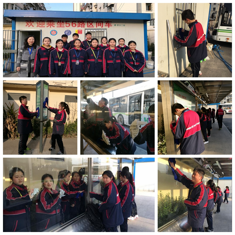 同学们怀着向雷锋叔叔学习的精神,积极投入到这次学雷锋的活动中去。该班陈嘉怡、雷善翠、王欣欣、彭美慧、尹紫娟、卢璐、王佳琦、曹雯雯、叶德良、肖腾和陈思源在褚老师的带领下赴56路区间车终点站进行义务劳动,清除卫生死角,清洁车站的窗户、玻璃公告栏、车站牌,还车站一个干净、舒适的环境,同学们在活动中认真地打扫卫生,体会了“劳动最光荣”的内涵。