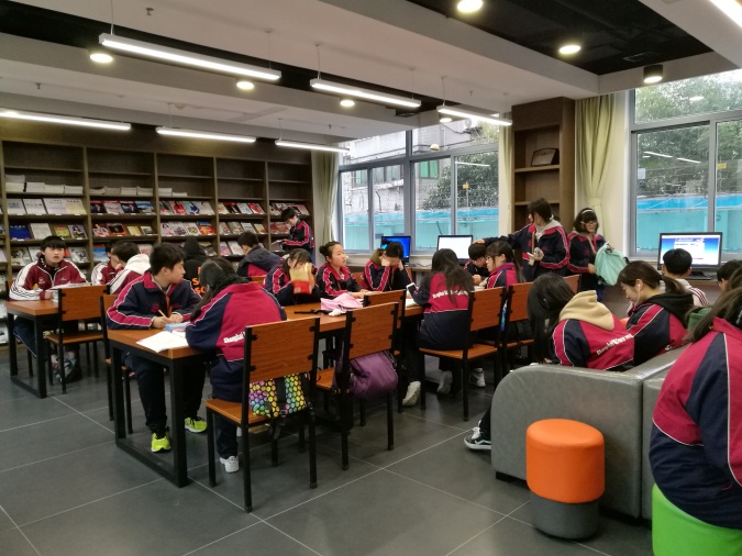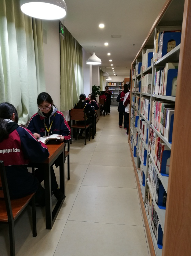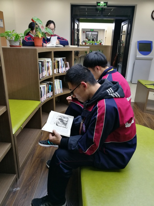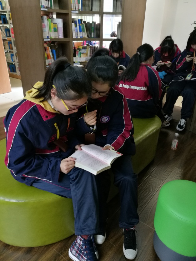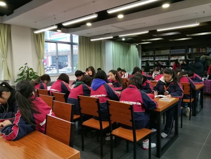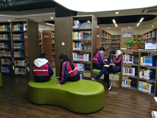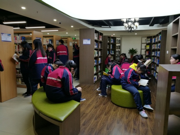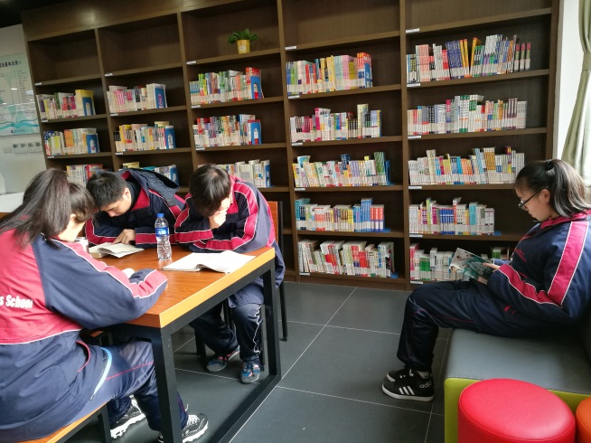 这里每天中午及放学后学生们虽然蜂拥而至,济济一堂,但在图书馆古典庄重而适宜静心阅读的环境下,每个人都自觉遵守图书馆的规章制度,不知不觉进入到读书的氛围中。在这样的氛围里,你已经不好意思成为不阅读的异类了。