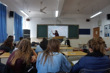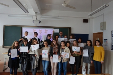 这15位法国同学分别来自高三和高二年级。虽然年级不同,但是他们有一个共同点,就是“二外”均是中文。所以,在中文老师Madame Peschard的指导下同学们用中文向来自商务法语专业1516和1618班的同学们介绍了罗德兹市、当地有名的博物馆、福煦高中,还有罗德兹高中和初中学习中文的情况。而为了实现上海和罗德兹的对比,法国同学还在中国接待同学的陪同下观摩了上海城市规划馆和上海博物馆。学习中国传统文化的同时,了解上海这座国际化大都市的变迁,看到“百万人民大搬迁”的过去和“城市让生活更美好”的今天。之后,15位同学和两个法语班同学一起绘制以“上海和罗德兹”为主题的海报,绘制我们的交流和友谊,更展望美好的未来。