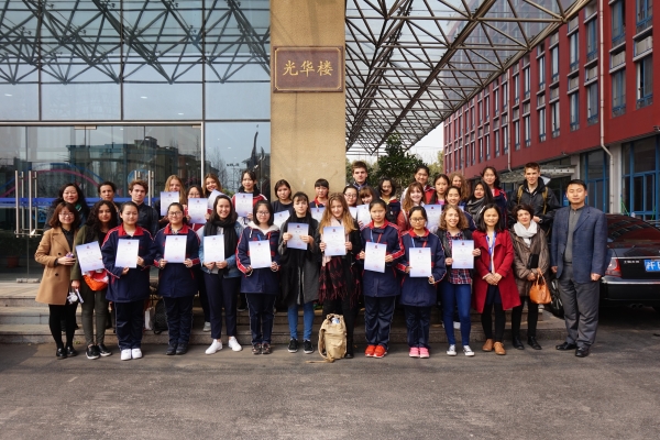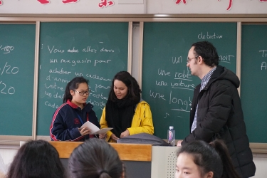 同学们不仅学习汉语,还进入1618班级的法语外教课堂,帮助我们的学生排对话、练法语。更精彩的是,中法接待同学在课程最后一天,分别用对方的语言中文和法语,以“我在上海学校的一天”为题,介绍了他们在中国的学习和生活经历。其中,有两位来自商务英语班负责接待的同学,用流利的英语为大家带来英语版的翻译。欢送仪式最后,由金南辉老师为中法同学颁发接待和来访证书,并致欢送词。中法学生正是在一步步用所学语言来了解对方的国家、文化、城市和人。为了延续“你说中文,我讲法语”的交流,我们将运用更多主题开展中法视频课堂或邮件写作的学习交流。