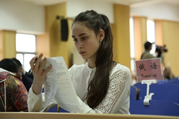 4月9日上午9:30,在组办方代表和各校带队老师的带领下,来自俄罗斯各地的29名参赛者来到我校明华楼多功能厅与我校商务俄语专业同学共同参加了第十三届俄罗斯基础学科国际比赛决赛开幕式。出席开幕式的有校长助理金南辉老师、商外二部主任杨菁老师、商务俄语组教师和俄语外教。开幕式由商务俄语组贺珍老师主持。商外二部主任杨菁老师对远道而来的客人表示热烈欢迎,希望这项比赛可以成为传统,一直在我校延续。组委会代表安东先生介绍说,参加本次比赛的有来自白俄罗斯、保加利亚、哈萨克斯坦、吉尔吉斯斯坦、塔吉克斯坦、乌兹别克斯坦、土耳其、捷克、巴基斯坦、俄罗斯和中国的同学,很高兴看到中国的学生为参加比赛而积极准备,这对加强中俄两国文化和教育领域的交流具有深远影响,并向为筹备本次比赛而辛勤努力的工作人员表示衷心感谢。在简短而隆重的开幕仪式结束后,比赛正式开始。今年的比赛与去年相比有两大突破:1、今年的参赛学生规模比去年增长了一倍,来自俄罗斯不同地区的29名学生和我校30名学生参加了数学、英语、俄语、历史、社会学、生物、计算机、对外俄语等科目的比赛;2、我校商务俄语同学除了参加对外俄语科目比赛外,还参加了数学、英语科目。两国学生在同一考场,选择各自擅长的科目进行比赛。比赛期间,俄方组委会代表和带队老师在校长助理金南辉老师的陪同下参观了校园,并了解了我校国际化办学特色以及商务俄语专业情况。比赛结束后,两国学生在光华楼大礼堂各自找寻了自己的小伙伴,相互介绍与交流,并进行了友好体育团队活动,下午一同进行了探寻田子坊的游览活动。