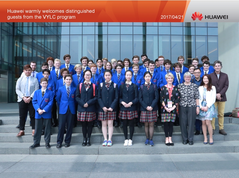 2017年4月21日下午,维多利亚未来领袖青少年交流团(Victorian Young Leaders to China 简称VYLC)的学生在国际部老师与国际文化交流学生团队(International Communication Team 简称ICT)的带领下开展了上海华为集团研发中心探访活动。华为集团主管李鹏先生带领澳洲学生们参观了此公司,并向他们讲解了华为集团的历史进程与目前的科技发展及对未来的规划打算。
