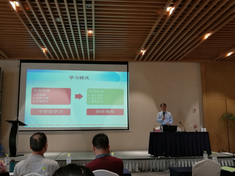 今天的培训专家是来自深圳职业技术学院信息中心的教育技术专家李春林老师,培训主题为“信息技术与课程教学深度融合”。 培训伊始,李老师先向大家展示了深圳职业技术学院的网络教学平台,并指出信息时代最重要的不是技术,而是思想和内容。如何通过信息化手段将内容呈现出来,是我们应该关注的焦点。著名的可汗学院,页面虽简单,但是内容和思想吸引人,我们应该学习怎样通过互动手段达到教学目标。