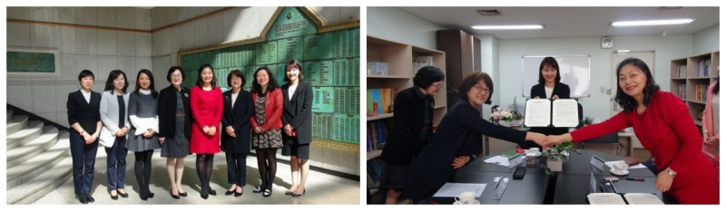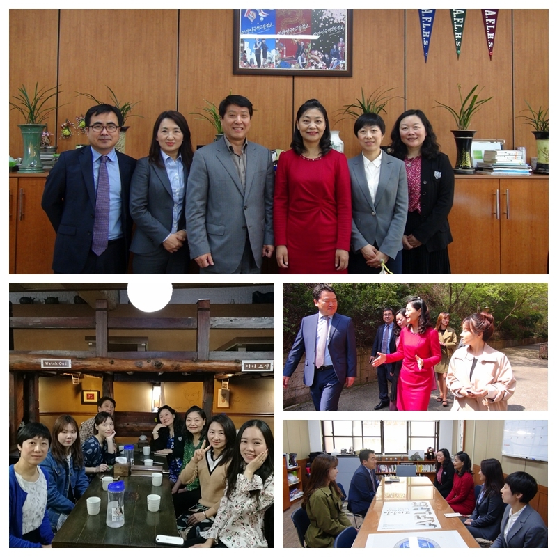 4月19日下午,高国兴校长一行参观了美丽的梨花女大校园,之后,在韩国梨花女子大学语言教育院会议室受到了的李海瑛院长,柳逸仙副院长等五位老师的热情接待。 访问会谈中,双方就之前拟定的 《关于韩国语研修的协议书》展开讨论,审核协议草案之后,双方签订了两校合作备忘录。在协议中,梨花女大语言教育院对我校有意愿的学生提供留学之前的语言培训,优先安排校内宿舍,推荐我校优秀学生考取大学本科等的条款,为学生多元化发展和国际中本贯通打下了良好的基础,为我校韩语专业的发展和学生的国际化素养的培养起到助力作用。