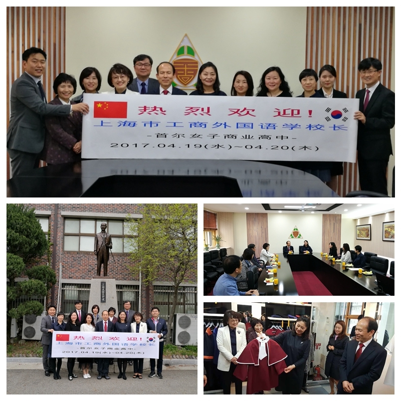 2017年4月19日~4月23日,由上海市工商外国语学校的高国兴校长带领的教师一行四人(团组成员杨菁,王佳,李松月)出访韩国,访问了两所姐妹校,即韩国安养外国语高中和韩国首尔女子商业学校,韩国延世大学和梨花女子大学,以及韩国教育部,洽谈了下一步的合作交流的设想和具体项目。