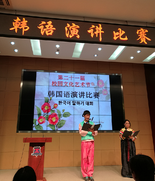 记第二十一届校园文化艺术节韩国语演讲比赛