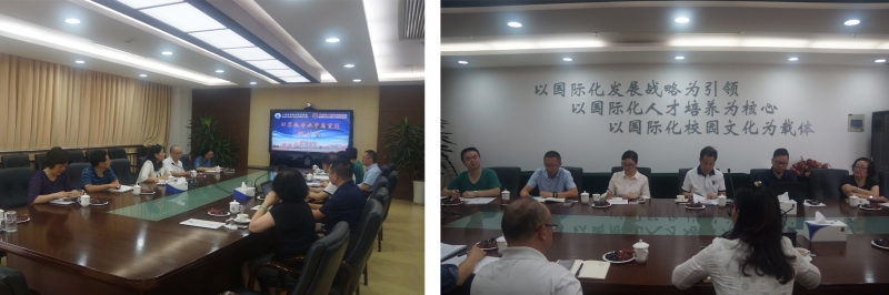 首先,高校长致欢迎词,并介绍我校的发展历史、专业设置情况以及近年来取得的成绩。王院长介绍了东海职业技术学院传媒学院的基本情况,以及学院影视动画、广播影视节目制作、计算机技术三个专业建设情况。