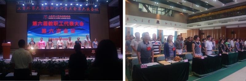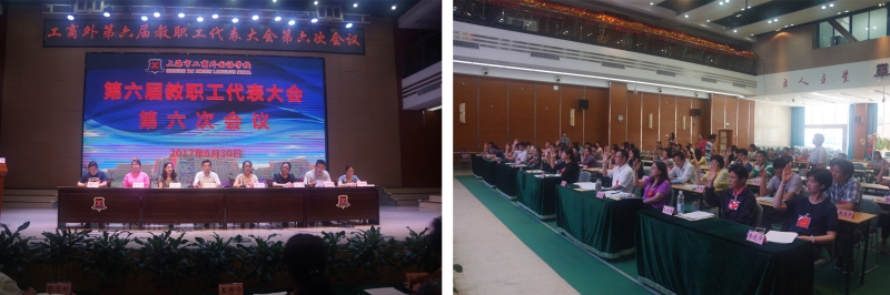 2017年6月30日上午10:00,我校第六届教职工代表大会第六次会议在光华楼大礼堂召开。会议由执行主席谢永业主持,68名正式代表出席会议,全体中层干部列席了会议,大会雄壮的《国歌》中拉开序幕。