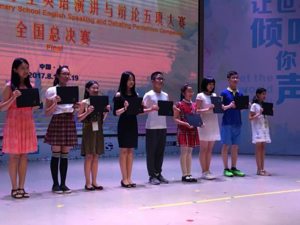 2017年8月15日-19日,2017年全国中小学生英语演讲与辩论五项大赛全国总决赛在21世纪全国英语演讲上海培训基地(我校)圆满落幕。本次大赛是由中国日报社二十一世纪英语教育传媒主办、我校承办的面向全国中小学生的综合性英语思辨能力的大赛。分为小学组、初中组和高中组三个组别,参赛选手来自全国13个省市共计120名选手。