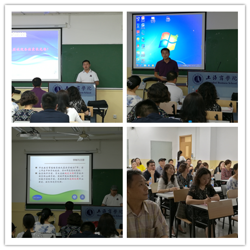 首先熊平安处长向新生家长们介绍了中高职、中本贯通试点专业学校情况;接着上海商学院高等技术学院院长陈敏介绍了贯通试点专业今年的招生情况、市教委有关政策以及商学院有关管理要求;获得上海市金手指称号的该院财务管理专业毕业生、现上海商业会计学校教师顾莹莹分享了自己从中职、专科最后到本科的学习感受和成长经历;随后财金学院副院长李志刚以会计专业为例介绍中本贯通一体化的课程设计和改革思路;最后熊平安处长作了总结,并对贯通学生的培养提出要求与期望。