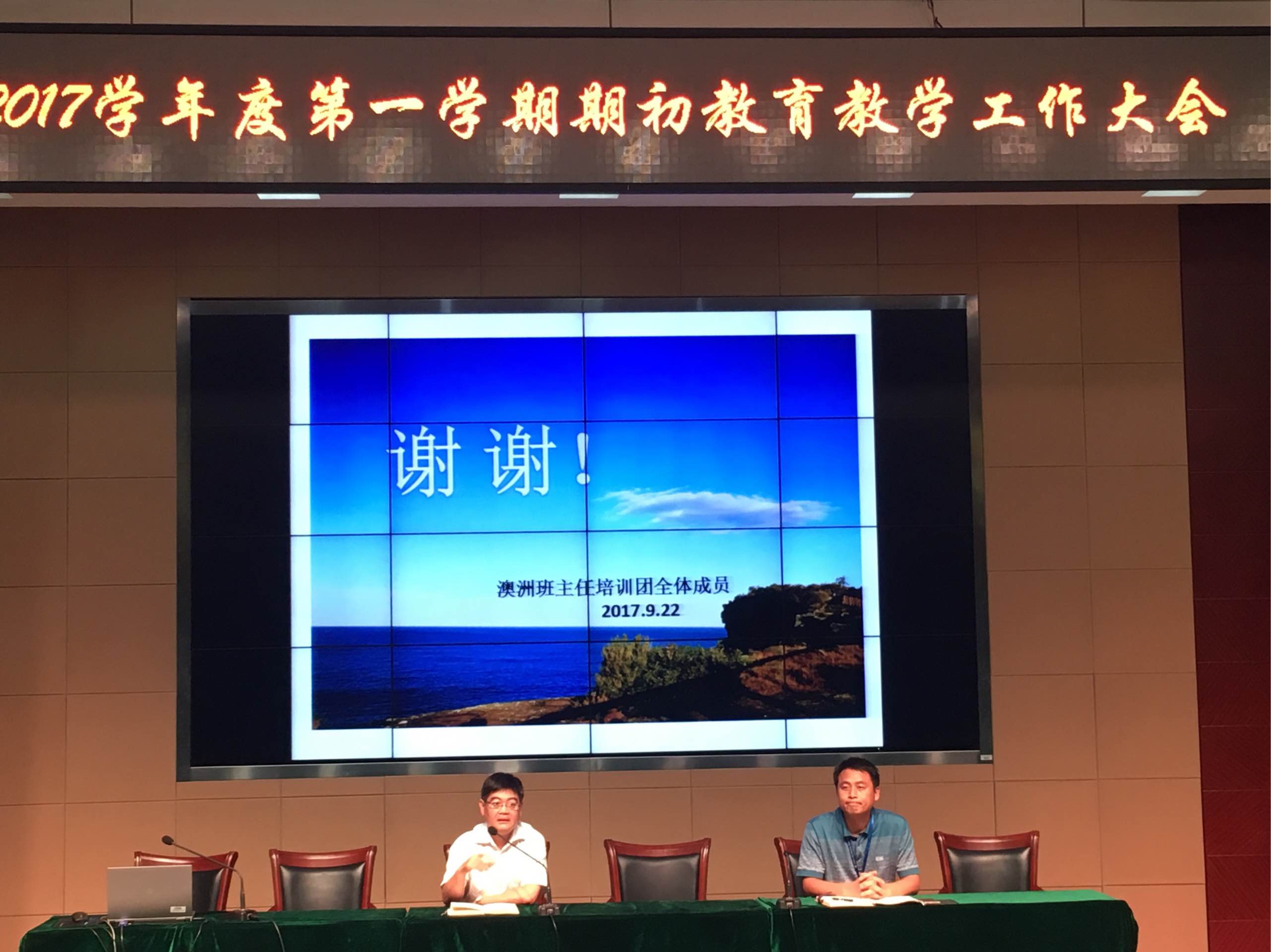 9月22日我校召开了2017学年度第一学期教育教学大会,本次会议的主要内容是教师班主任国外培训经验心得分享、部门工作介绍以及新学期教育教学工作的动员。