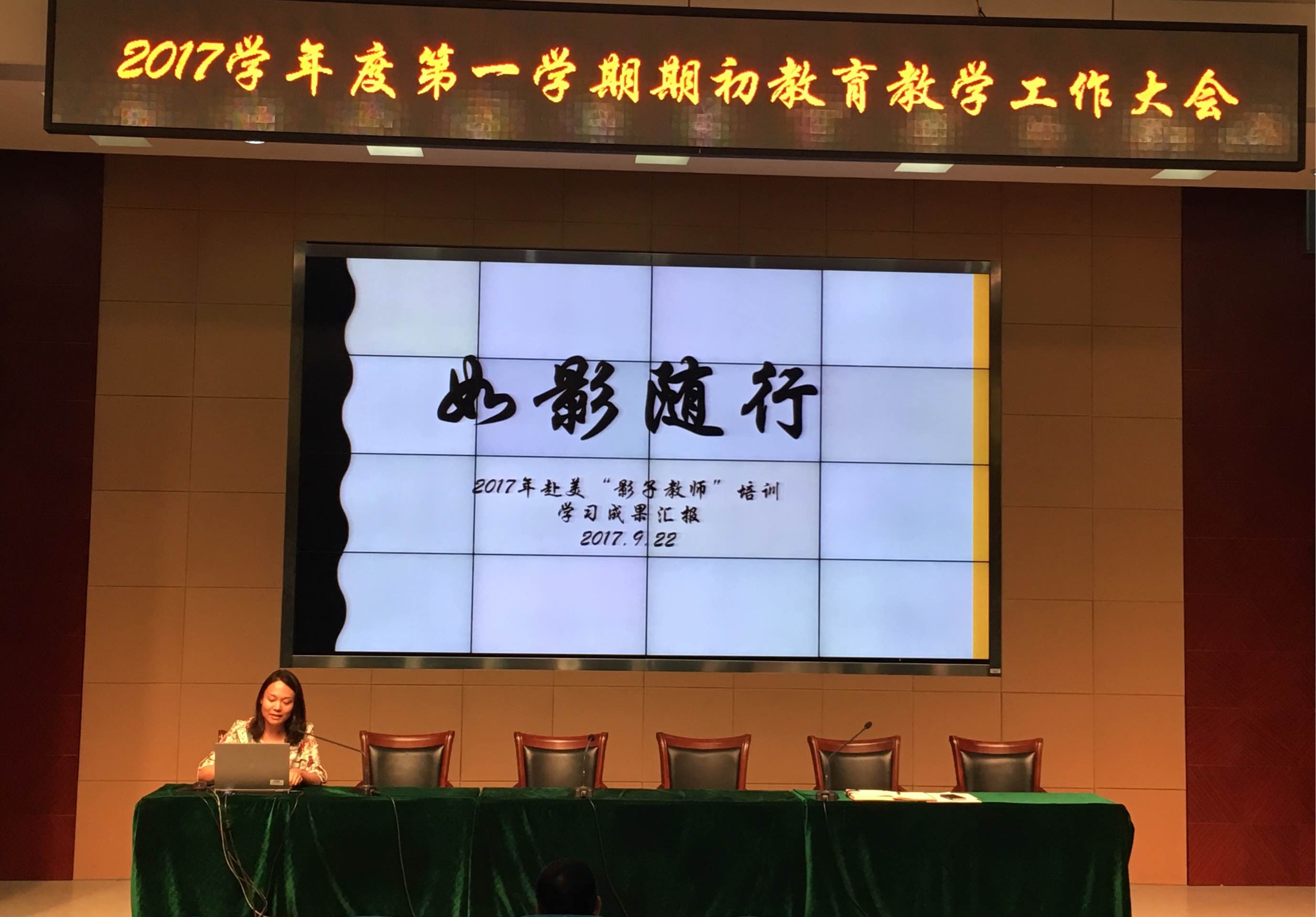 唐菲老师作了题为《如影随形》的赴美“影子教师”培训学习成果汇报。此次培训共计24天,分为三个阶段,老师们主要了解了美国基础教育体系,关注到美国学校对于学生能力的培养以及全方位教学育人的特色。