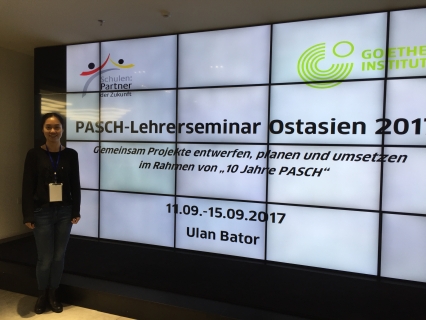 我校德语教师杨晔受到歌德学院东亚地区总部邀请,于9月11日-16日赴蒙古参加了在首都乌兰巴托举办的东亚地区PASCH项目教师专题研修班。此次PASCH学校德语教师研修班以“PASCH十年”为契机,以项目教学为主要内容,旨在通过跨国、跨地区项目的共同研发、安排和实施,加深不同国家和地区间的交流。