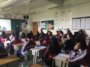 在一年级的课堂里,ESTHER和BEGOÑA女士给学生们介绍西班牙的地理和教育制度,和学生们一起分享她们不远千里带来的美食。学生们充满好奇、也对未来的学习充满了动力。