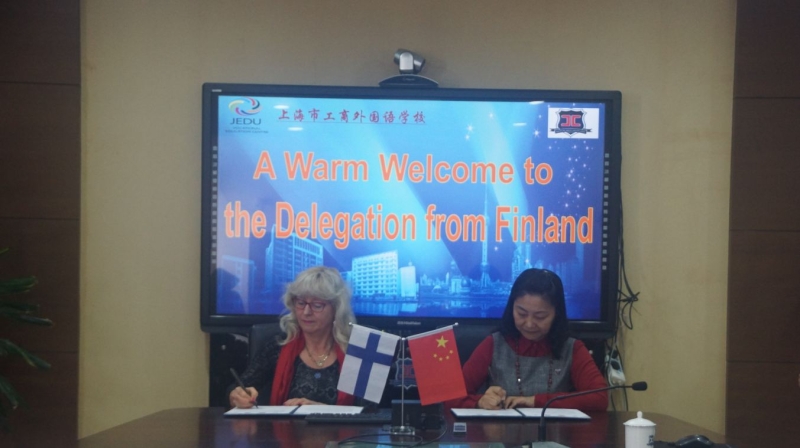 我校国际教育部与芬兰受全国教育委员会资助的Kamoon China教育联盟合作已有多年,每年春季该联盟均会派来沪跨国公司实习的芬兰学生在我校国际教育部学习商务汉语。近两年来,该联盟中的JEDU地区联盟更与我校建立了深度合作。在师生互访、芬兰国赛等方面有新的拓展。2017年11月8日,该联盟JEDU职业教育中心与我校续签了合作备忘录,双方一致商定将在2018年进一步推动双方合作。