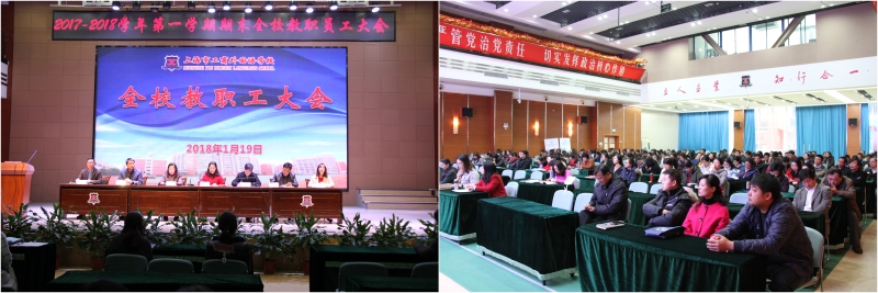 2018年1月19日上午,我校2017-2018学年第一学期期末教职工大会在光华楼大礼堂召开。会议由党委书记李红兵主持。全体教职工出席了会议。