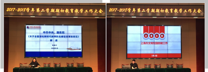 2018年3月2日下午,我校召开了2017-2018年第二学期期初教育教学工作大会,会议由副校长金南辉主持,校长高国兴、党委书记李红兵、纪委书记徐婷出席会议并讲话,全体任课教师以及班主任参加会议。