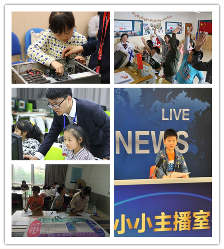 小电脑工程师们打开一个个神秘的主机盒一探究竟,食堂里美食家们正满足地吃着自己做的紫菜包饭,演播室里小主播们坐得端端正正用英语播报有趣的内容,身着和服的小导游们初步体验了不同文化的魅力......
