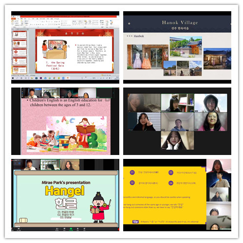 寒假期间,两国学生于线上开展多次交流活动。活动以“中韩传统文化”为主题,两国学生通过PPT形式配以图片、故事等讲述各自国家的传统文化,包括传统节日、当地美食、风土人情及教育特色等。通过交流,进一步加深学生对中韩文化的了解,增强跨文化沟通交流能力,拓宽国际视野,为学校培养国际化人才奠定基础。
