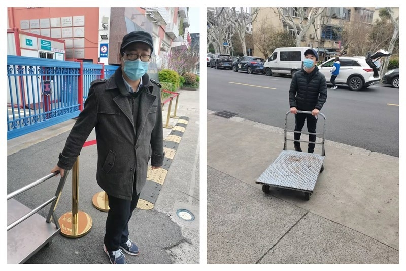 在当前疫情严重、防疫物资紧缺的情况下,长桥街道各居委需向附近学校租用相关防疫物资。学校接到长桥街道各居委防疫物资需求对接信息后,后保科第一时间准备好几辆大号平板推车,满足平福居委志愿者们为中恒苑社区居民送货的需求。