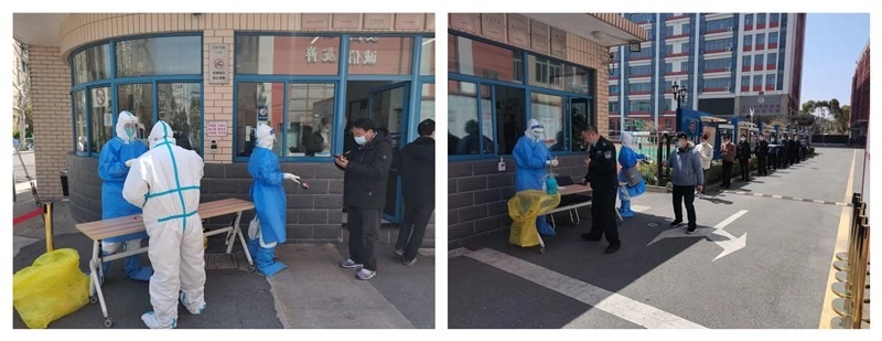 学校实行准封闭管理后,保安、物业部分工作人员24小时值守住校,没有纳入到社区网格化核酸检测的管理范围。面对严峻的疫情防控形势,为及时安全解决住校人员的核酸检测问题,学校多方联系相关街道医疗部门、区教育局,得到长桥街道疾控部门的大力支持,派人到学校为住校人员解决核酸检测困难,充分体现关键时刻医护人员的医者仁心和责任担当。