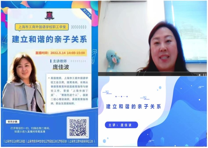 家庭教育是一个备受关注的社会现实问题,尤其是疫情期间孩子们居家学习家长如何帮助孩子调适亲子关系、应对亲子关系更是家长们的必修课,为帮助家长树立健康的家庭教育理念,提高家庭教育质量,促进孩子健康成长,2022年5月14日,我校工会开展2022年“职工学堂”暨家长学校、家庭教育指导系列课程第二讲,我校工会主席、国家二级心理咨询师庞佳波为我校教职工、学生家长和市经信系统兄弟单位职工带来《建立和谐的亲子关系》的线上讲座。学校工会副主席徐旸主持讲座。