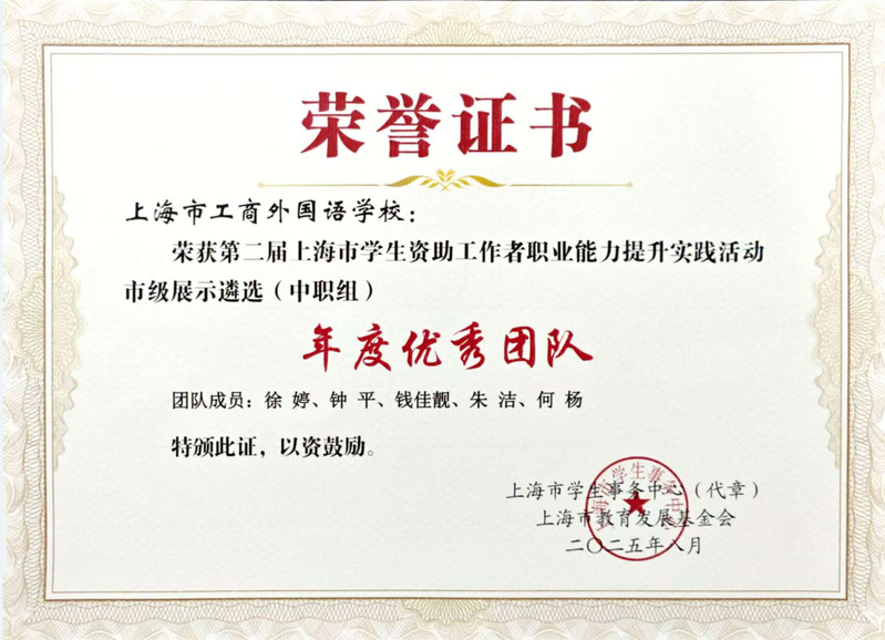 近日,由上海市学生事务中心和上海市教育发展基金会共同主办的“第二届上海市学生资助工作者职业能力提升实践活动”市级展示遴选结果正式公布。我校学生资助工作团队凭借出色的综合能力和精彩的现场表现,荣获中职组“年度优秀团队”称号。