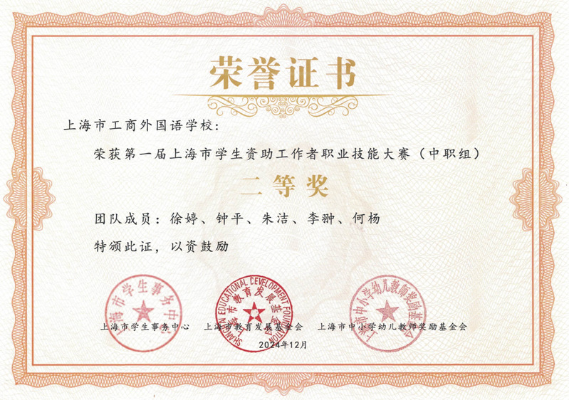 在徐婷副校长的带领下, 团队精心备赛、团结协作,充分展现了我校学生资助工作队伍良好的专业素养和精神风貌。此次获奖是我校学生资助工作团队在市级赛事中取得的又一佳绩。在去年举办的“第一届上海市学生资助工作者职业技能大赛(中职组)”中,我校团队曾荣获二等奖。