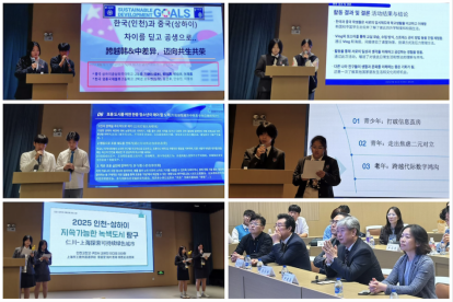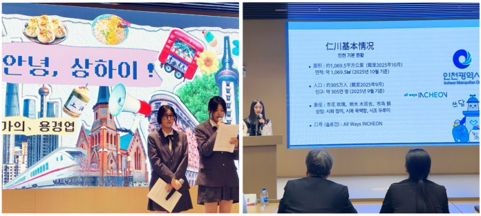 学生是交流的主角。中韩两国学生代表先后发言,分享对上海与仁川两城共通与开放的认同,表达了对在交流中拓宽视野、凝聚共识的期待。随后,两国学生分别介绍了上海与仁川的城市魅力,从历史底蕴到现代发展,让在场师生更直观地感受到彼此的文化风采。