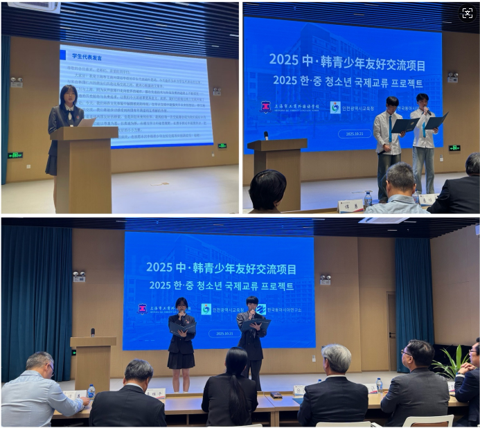 金秋十月,丹桂飘香。10月21日,韩国仁川市教育厅及仁川市5所高中组成的青少年友好交流团走进上海市工商外国语学校,开启一场以“文化互鉴、友谊搭建”为主题的交流之旅。此次活动由仁川市教育厅与上海教育国际交流协会联合主办,上海市工商外国语学校承办,韩中全球协会协办,旨在以仁川和上海两座开放港口城市的历史背景为基础,以提升青少年的历史洞察力、全球合作能力及对未来技术的理解力为目标,为中韩青少年搭建起深度沟通的桥梁,进一步增进两国新一代的相互理解与友好情谊。两国学生以热情友好的姿态参与丰富多彩的活动,共同完成了一次精彩难忘的青少年跨文化交流之旅。