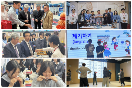 本次交流还特别设置了中韩文化体验环节。两国学生开展了踢毽子友谊赛,在趣味竞赛中感受民俗游戏的乐趣;我校董曦丹老师为韩国师生带来精彩的茶艺文化课,在馥郁的茶香中品味中华文化的传统韵味。