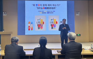 活动中,韩中全球协会会长禹守根博士为两国师生带来一场“中韩两国的过去、现在与未来”的专题讲座。他以深厚的学识、开阔的视野梳理了中韩关系发展脉络,从历史渊源到当代合作,再到未来携手方向,为青少年搭建起理解两国关系的清晰认知框架,让在场师生深受启发。