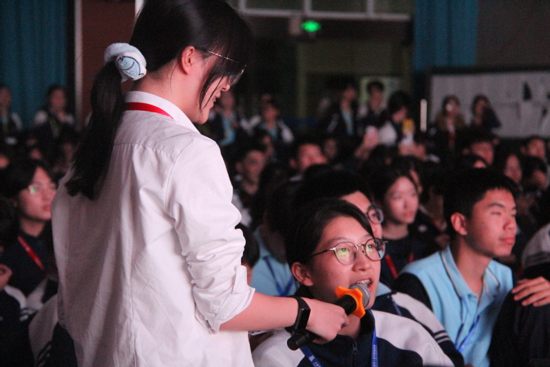 在法律知识问答环节,主持人结合生活案例,围绕《未成年人保护法》《民法典》及校园安全等主题设置问题,同学们踊跃参与,在互动中加深了对法律知识的记忆,真正实现 “寓学于乐”。