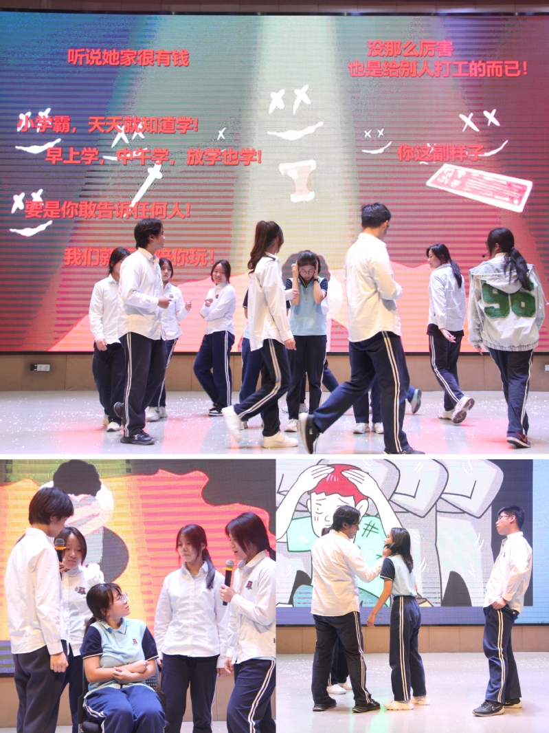法治情景剧《捧起那束光》聚焦校园生活中的常见问题,以欺凌与辱骂等情境为切入点,真实再现校园不良行为带来的伤害。同学们真挚的表演,让观众深切感受到法治的力量与温度,在思考中更坚定了对公平与正义的信念。