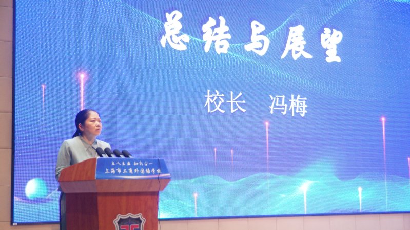 大会的最后,冯梅校长讲话。冯校首先是对本次大会的教学展示、专家点评、颁奖、阶段小结、质量规范培训等环节进行了点评,回顾了学校在教师队伍建设方面的成果,充分肯定“五艺共生”的新时代职教“金师”的教研主题在推动教师综合素养提升方面的积极作用。