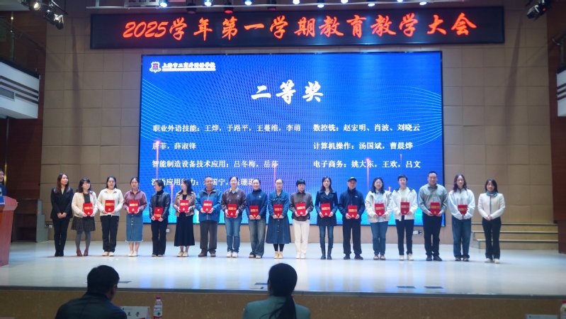面向未来,冯校长提出了五个方面的期望:一是强化“师德师风”,落实立德树人,深化劳模工匠精神培育;二是优化专业结构,推进产教融合;在新专业申报、传统专业转型、丝路电商高水平开放实训中心建设等方面持续发力;三是加大数字化转型力度,将人工智能技术全面融入学校管理过程;四是瞄准世界技能大赛,提升竞赛育人能级;五是进一步推进职教出海,增强国际影响力。冯校长号召全体教师凝聚共识、协同奋进,共同书写中职教育高质量发展的新篇章!