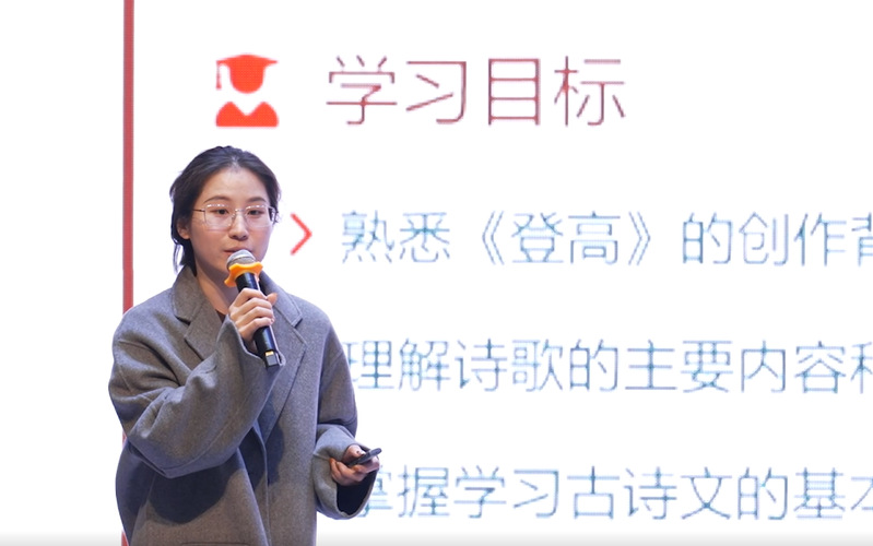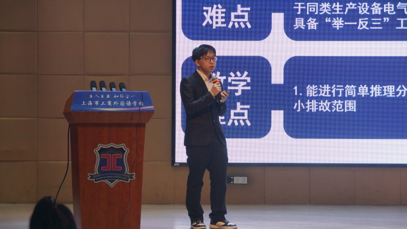 大会首个环节是教学展示及专家点评。由在2024学年青年教师公开课展示活动中获得一等奖的两位青年教师进行说课。陈芳老师带来《登高》说课,她将语文教学中的人文底蕴与中职学生的学习特性相融合,尽显经典诗词的独特韵味;张逸凡老师的说课主题是《Z3050型摇臂钻床故障诊断与分析》,他围绕课堂重难点,结合实操性和技术性,层层递进,充分展示了工科教师冷静、客观、沉着的特性。