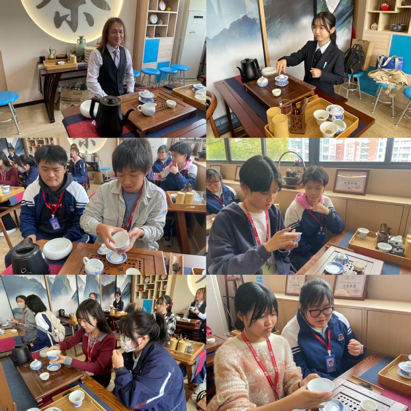 课堂体验之余,交流活动还延伸至文化层面。在董曦丹老师精心准备的中国传统文化体验课上,日本师生对优雅的茶艺表现出了浓厚的兴趣。他们凝神屏息,观看茶艺表演,并在老师指导下亲身体验了泡茶的过程,感受中国茶道“和静怡真”的韵味。中日两国茶文化同源异流,在此刻交汇碰撞,引发了师生们对文化异同的思考与讨论,加深了彼此的理解。