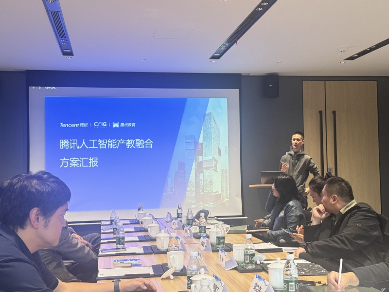 冯梅校长感谢了腾讯公司的热情接待,介绍了学校在办学方向、专业特色、人工智能方面的基本情况和主要做法,尤其是在人工智能教育实验校的探索实践、国际化办学背景下“职教出海”、人工智能领域教师团队培养等方面进行了具体阐述。冯校长表示,希望腾讯等头部企业帮助学校“把脉”,在十五五规划的编制期间,给予学校大力的支持,双方共同探索互利共赢的校企合作新形式。