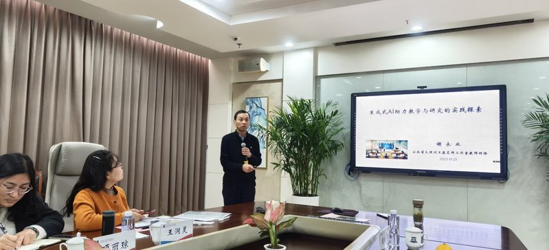 随后,全国模范教师、名师孵化工作室主持人谢永业老师作题为“AIGC 如何助力教学与研究” 的专题报告。他系统介绍AIGC 技术在教育场景中的应用路径,涵盖智能备课、学情分析、资源生成与教学评估等关键环节,并结合典型案例直观展示AIGC 在提升教学效率、推动个性化学习与支持教师科研方面的巨大潜力。报告内容前沿、案例详实,为教师们理解并落地运用AIGC工具提供了全方位指导,明确了技术赋能教育的实践方向。
