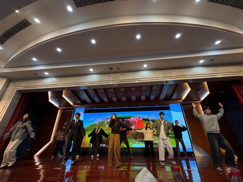 师生们首先观摩了由该校德语专业学生带来的实训汇报演出。节目形式丰富多样,涵盖德语歌曲串烧、童话情景剧、主题视频展示等。现场演出精彩纷呈,掌声不断。节目间隙还设置了生动有趣的互动环节,将现场气氛推向高潮,同学们全程投入,兴致盎然。