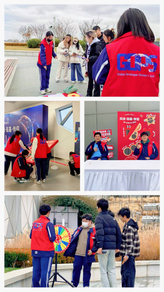 大会举办期间气温骤降、寒风凛冽,我校志愿者身着统一服装坚守岗位。从签到处的信息核对、暖心指引,到游戏区的秩序维护、规则讲解,再到会场通道的穿梭引导,志愿者们全程坚守岗位,用青春力量为活动有序进行筑牢保障。
