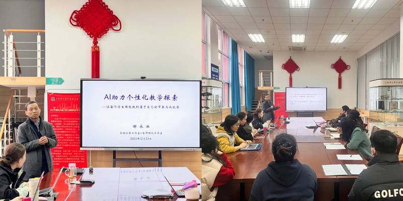 为践行“以生为本”的教育理念,破解传统教学中个体差异关注不足的难题,2025年12月23日下午,谢永业劳模创新工作室暨名师孵化工作室(第二期)研修活动于我校劳模工作站开展。本次活动聚焦“AI助力个性化教学”展开深度探讨,由全国模范教师、上海市劳动模范、上海市教书育人楷模谢永业老师担任主讲,学校名师工作室主持人及学员共同参与,活动围绕“让每个学生都能找到属于自己的节奏与成就感”的核心目标,系统分享了AI技术在个性化教学中的实践路径与前沿探索,为提升教育教学质量、促进学生全面发展注入新思考。