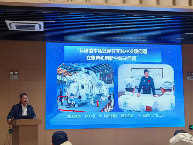 展望环节聚焦职业教育在新时代下的使命与创新。工作室主持人王曙群大师作了题为《技能领航·数智赋能·匠心传承》的微讲座。他结合自身从一线工人成长为航天领域领军人才的经历,深刻阐述了“匠心”在智能化时代不可替代的价值。他强调,数字技术是工具,而追求极致、精益求精的工匠精神是灵魂,职业教育必须坚持“手脑并用、知行合一”,培养既能驾驭智能装备,又恪守职业信仰的新时代工匠。